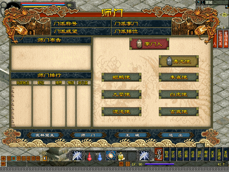 排名规则:师门排行每小时进行一次,参加师门排行的角色不能参加任何帮派