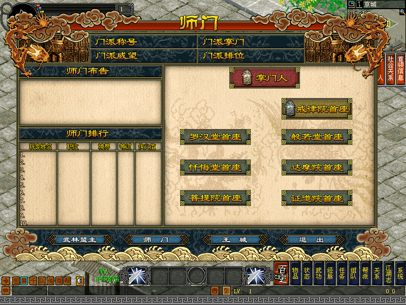 排名规则:师门排行每小时进行一次,参加师门排行的角色不能参加任何帮派